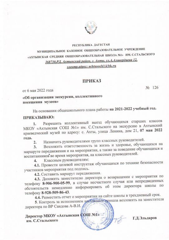Приказ о создании комиссии по осуществлению родительского контроля за питанием обучающихся МКОУ Ахтынская СОШ №1