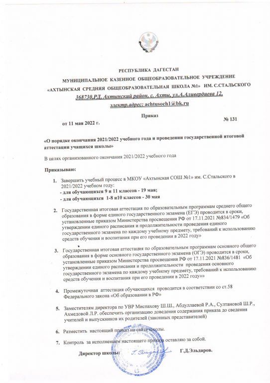 Приказ о завершении 2019-2020 учебного года